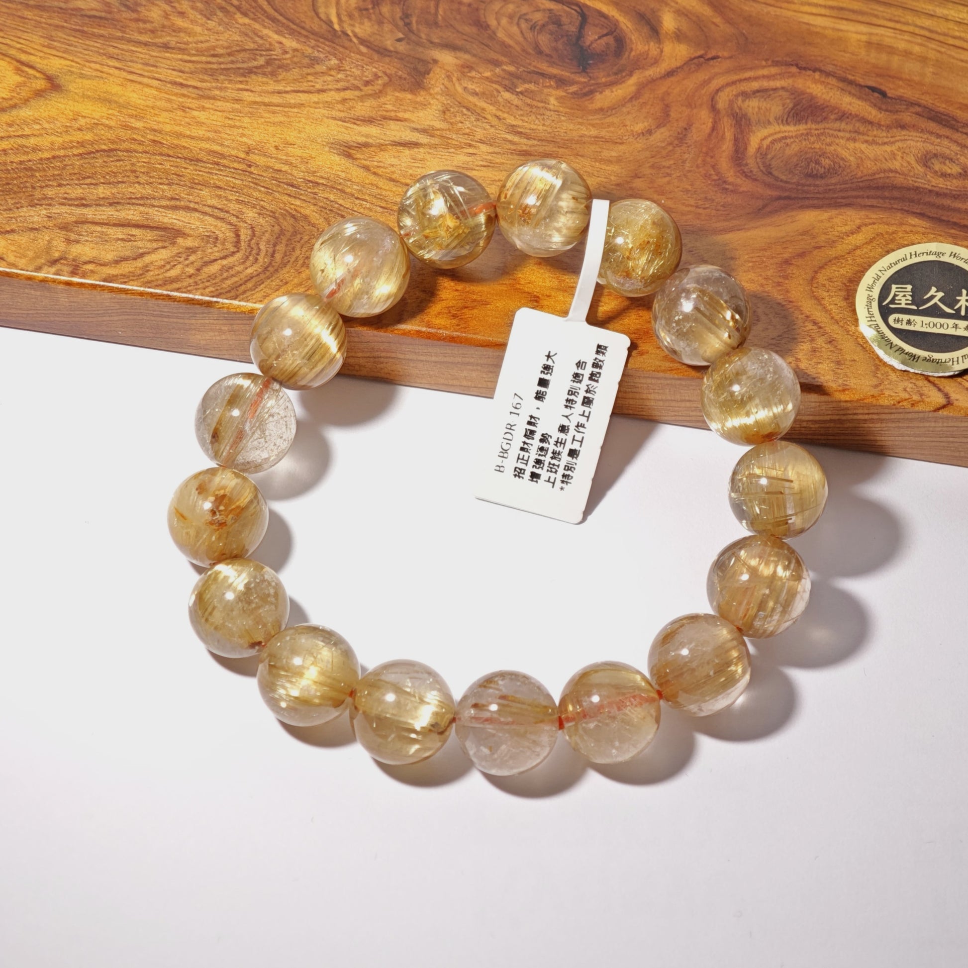 金鈦晶 - 滿滿而整齊排列的金紅石(Rutile)內含物,能夠造成金光閃閃的貓眼效果,被譽為「財富之石」,強大招財效果,包括正財和偏財